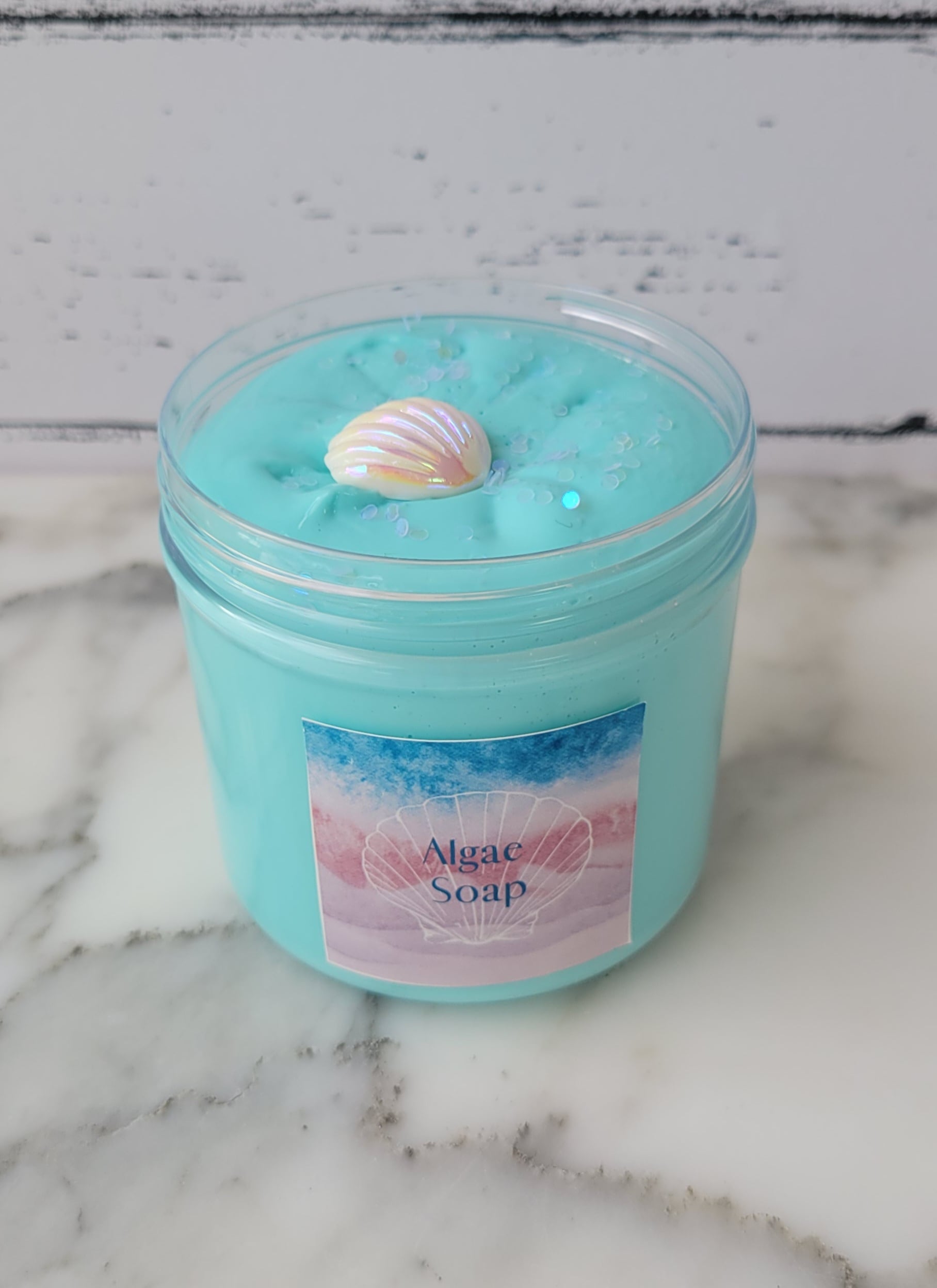 こちらも何度も再販しているリピ率高いスライムです。はじめはマットな石鹸がモコモコに泡立つ変化の大きいスライムです。
